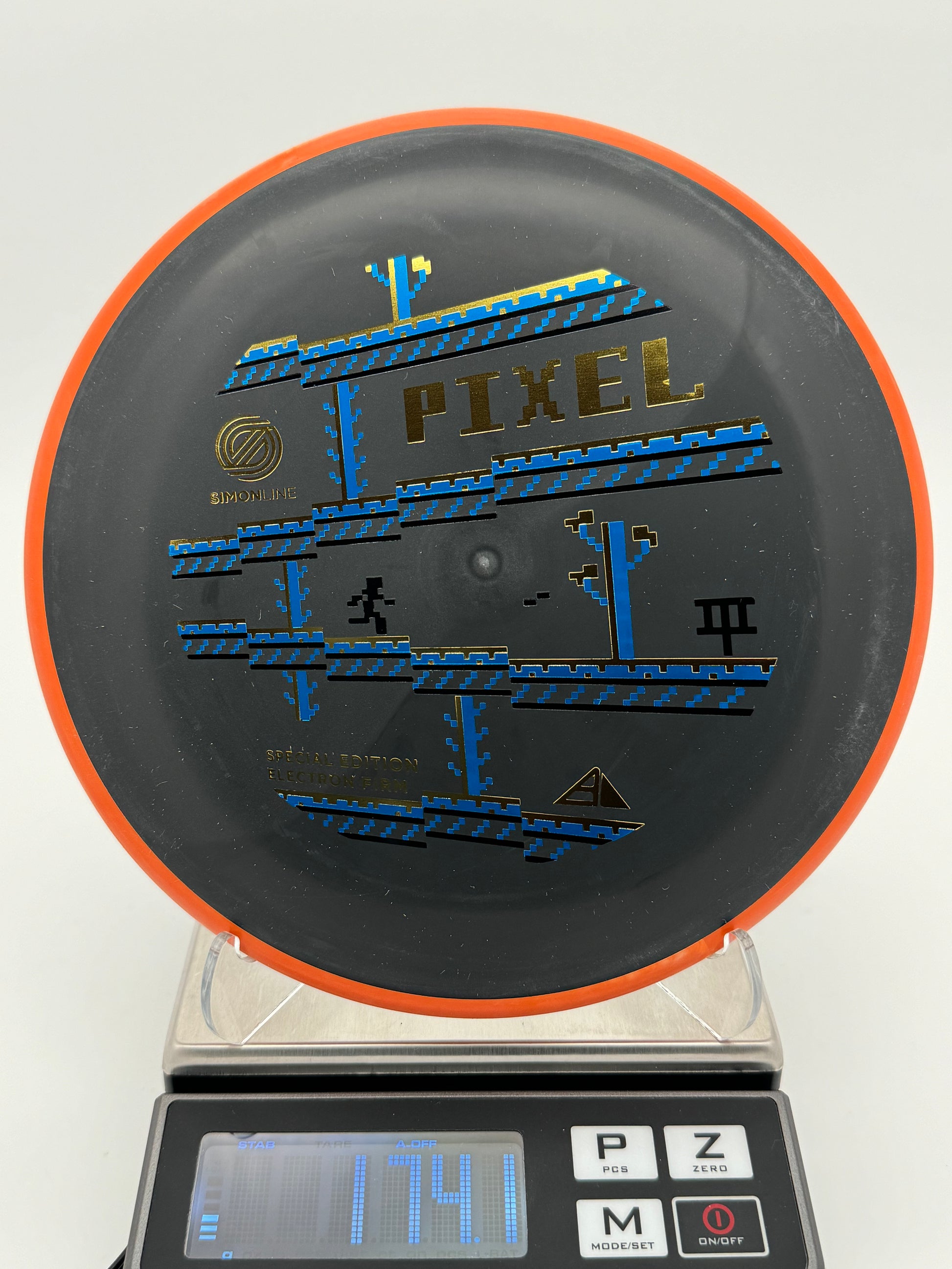 Reimagining the game of disc golf in 8-bit, including the one tree to miss, DoubleRam Design is back with our first Special edition of 2024, the Electron Pixel! The second disc in the Simon Line, the Pixel is a deep, micro beaded, reliably straight/stable putter - perfect for when you need some extra glide on those longer putts. Celebrate the release of the second Simon Line disc with the Special Edition Electron Firm Pixel!